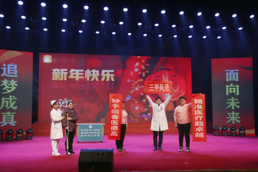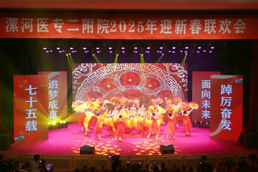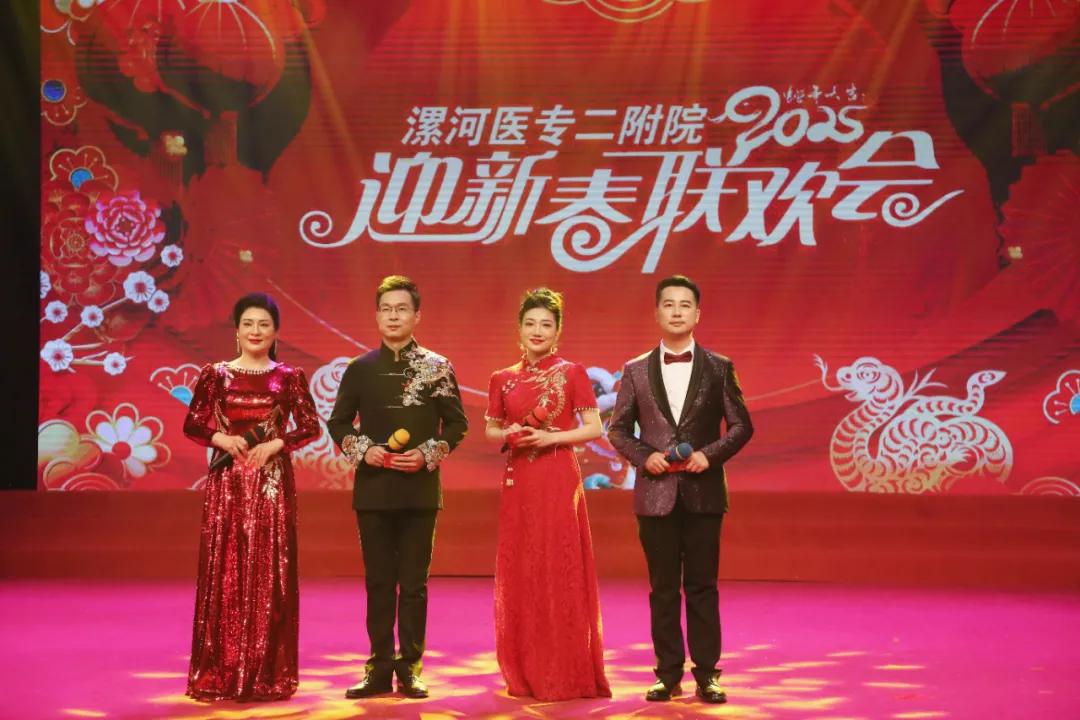為慶祝漯河醫(yī)專二附院(漯河市骨科醫(yī)院、漯河市立醫(yī)院)建院七十五周年,1月21日,漯河醫(yī)專二附院2025年迎新春聯(lián)歡會(huì)在漯河市科教文化藝術(shù)中心大劇院隆重舉行。漯河醫(yī)學(xué)高等專科學(xué)校校長(zhǎng)張祎捷,市衛(wèi)生健康委副主任于宏,市醫(yī)保局副局長(zhǎng)于懷江,漯河醫(yī)專黨委副書(shū)記邊曉峰,市科協(xié)副主席臧明濤,市總工會(huì)四級(jí)調(diào)研員李敏,漯河醫(yī)專紀(jì)委書(shū)記王蕾,漯河醫(yī)專副校長(zhǎng)張福華、馬永超,漯河醫(yī)專二附院黨委書(shū)記柴運(yùn)洪,漯河醫(yī)專二附院院長(zhǎng)王齊超,漯河醫(yī)專黨辦主任楊曉宇,漯河醫(yī)專行政辦主任申耀強(qiáng),漯河醫(yī)專團(tuán)委書(shū)記周沛,市衛(wèi)健委醫(yī)政科科長(zhǎng)胡艷麗,市總工會(huì)文教衛(wèi)工會(huì)主任谷賀衛(wèi),郾城區(qū)龍塔街道辦事處主任李瑩,郾城區(qū)巴山路居委會(huì)書(shū)記王梅芝,郾城區(qū)伊坪小學(xué)校長(zhǎng)徐偉濤等出席。