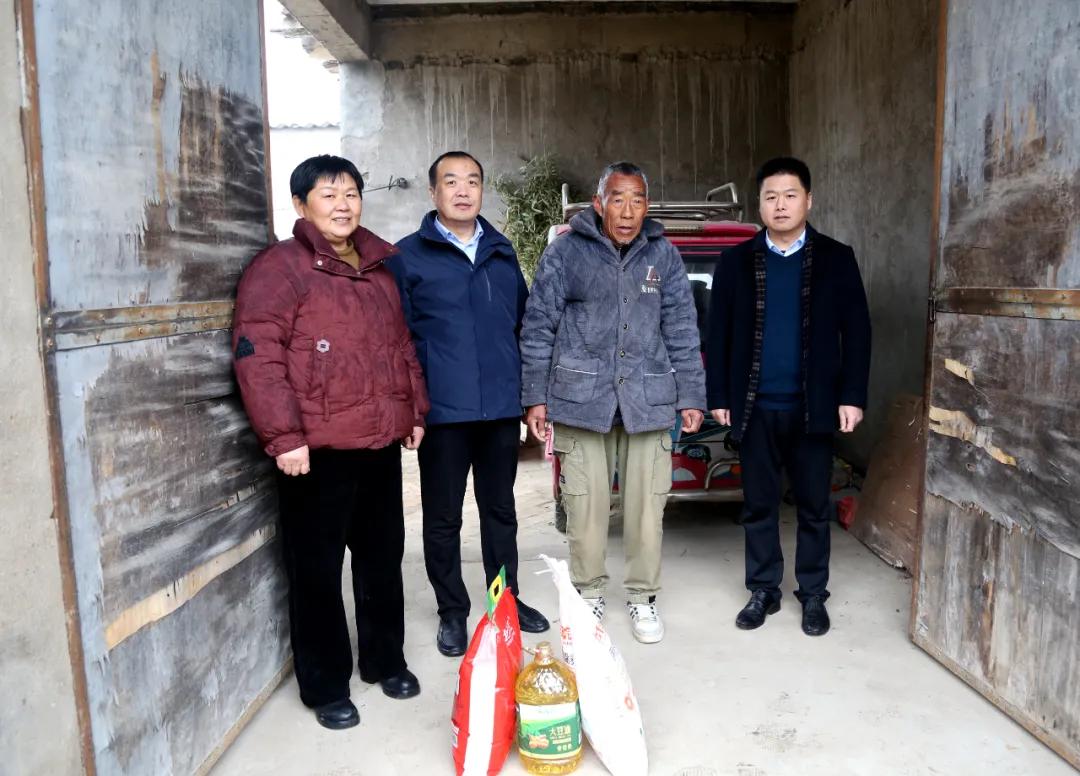 在郾城區(qū)淞江街道小趙村,院黨委書記柴運洪、院長王齊超一行將米、面、油等慰問品送到困難群眾家中,為村民們送來新春的問候。柴書記、王院長詳細了解他們的家庭收入、子女教育等情況,并鼓勵他們保持積極心態(tài),注意保重身體,早日走出困境。