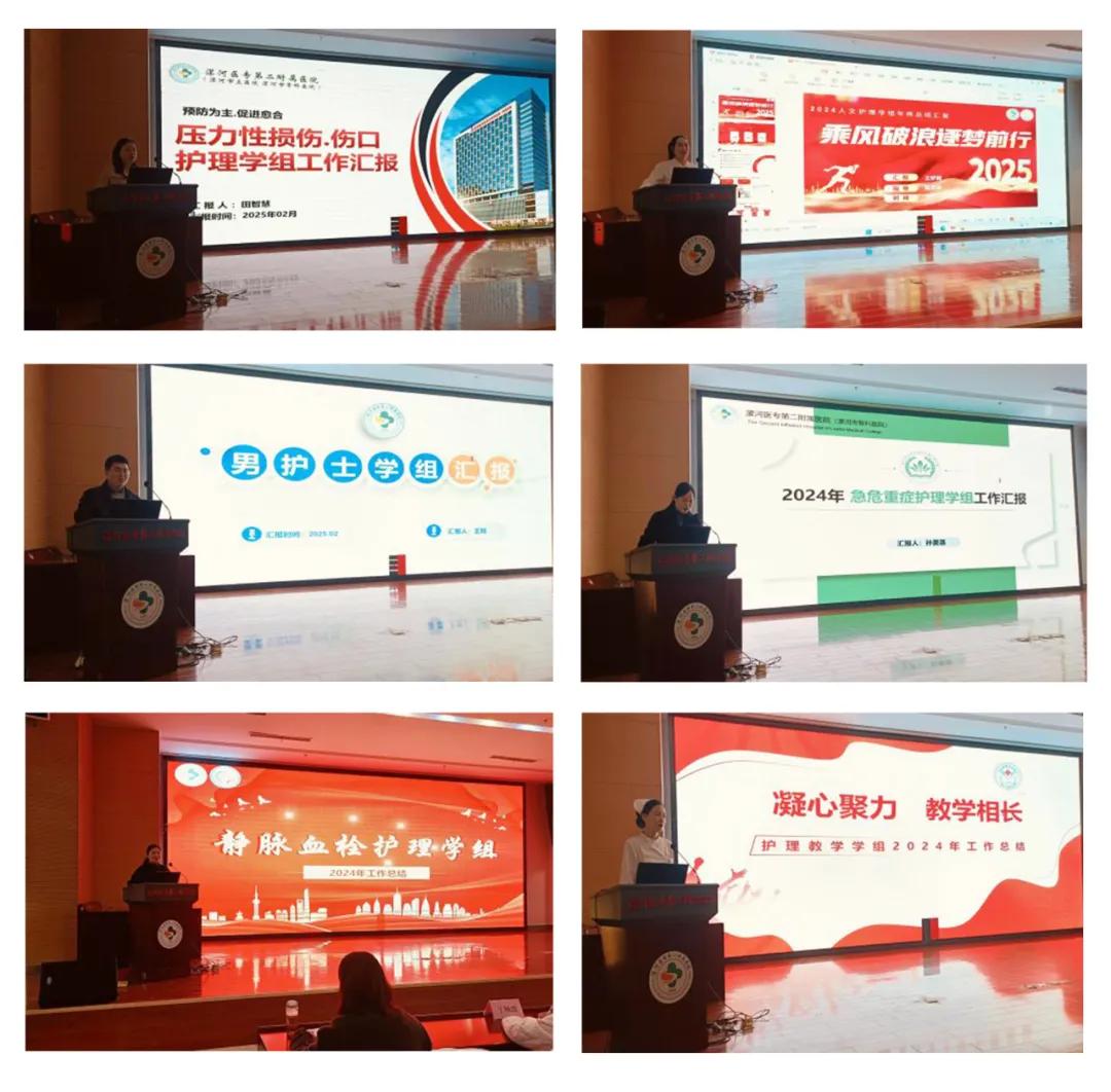 隨后,10個(gè)護(hù)理學(xué)組依次上臺(tái)進(jìn)行匯報(bào)。各學(xué)組代表圍繞2024年度工作目標(biāo)、取得成果、工作臺(tái)賬、存在問題以及2025年工作計(jì)劃等方面進(jìn)行了詳細(xì)闡述。在過去的一年中,各學(xué)組緊密圍繞醫(yī)院三甲創(chuàng)建工作,聚焦??谱o(hù)理發(fā)展,積極開展了一系列卓有成效的工作。在匯報(bào)過程中,各學(xué)組也坦誠地指出了工作中存在的問題和挑戰(zhàn)。