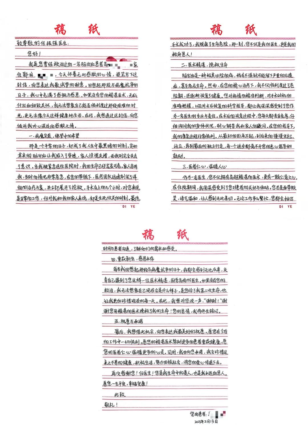 出院的患者回歸了正常的生活,回憶起在醫(yī)院的這段時(shí)間,他的心里充滿溫暖與感激,他將這份感激化作一封感謝信送給任振強(qiáng)醫(yī)生:"每當(dāng)我想起那段與病魔抗?fàn)幍娜兆?,我都?huì)感到無(wú)比慶幸,慶幸遇到您這樣一位醫(yī)術(shù)精湛、醫(yī)德高尚的醫(yī)生。如果沒(méi)有您的救治,我無(wú)法想象自己會(huì)是什么樣子,是您給了我第二次生命,也讓我更加珍惜現(xiàn)在的每一天。在此,我想對(duì)您說(shuō)一聲:‘謝謝!’,謝謝您用精湛的醫(yī)術(shù)挽救了我的生命!您的恩情我將終生銘記……"(盧 闖 劉 旭 袁錦鈺)