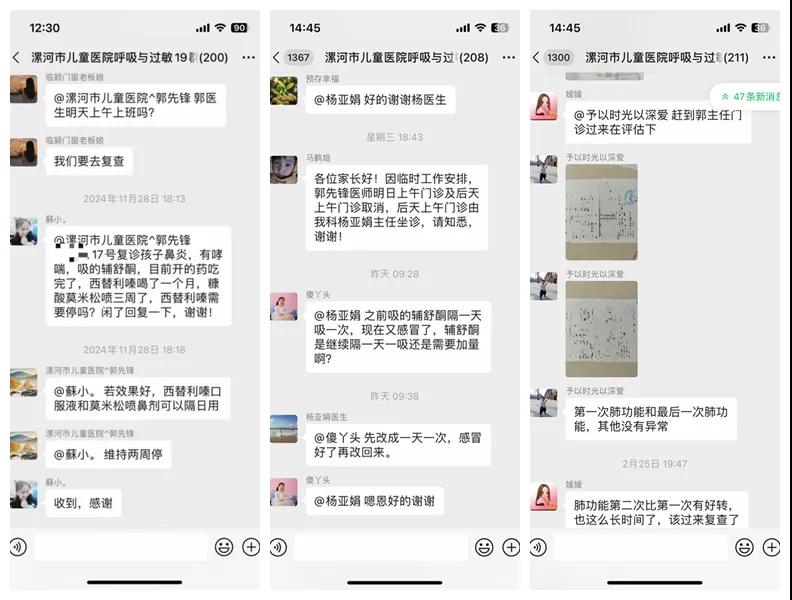 科室建立了咳嗽哮喘微信群,每個(gè)群配備有兩名醫(yī)生和一名哮喘專(zhuān)科護(hù)士,針對(duì)有疑問(wèn)的家長(zhǎng),我們直接線(xiàn)上解答,減少就診奔波。此外,科室還定期在微信群內(nèi)發(fā)布哮喘相關(guān)的健康資訊,包括季節(jié)性哮喘預(yù)防小貼士、飲食調(diào)理建議等,幫助家長(zhǎng)更好地管理孩子的哮喘狀況。