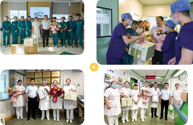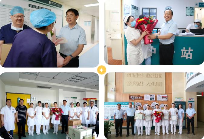 5月12日上午,院黨委書記柴運洪、院長王齊超等領導班子來到各科室、各病區(qū),為護理工作者送上精心準備的鮮花、蛋糕和慰問品。院領導與護理人員親切交流,關懷大家的工作和生活情況, 高度贊揚了大家“堅守崗位,以過硬本領和作風,積極投身醫(yī)院高質量發(fā)展新征程,真心護佑人民群眾健康”的初心、實踐。