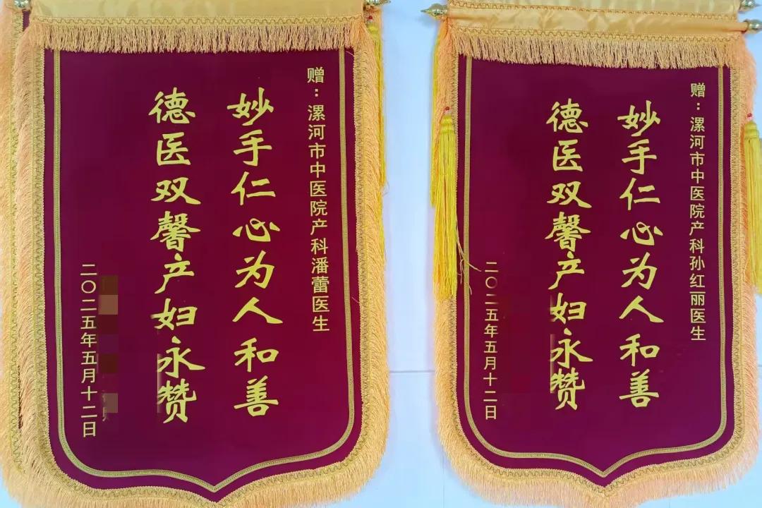 患者及家屬對婦產(chǎn)科團(tuán)隊(duì)醫(yī)療技術(shù)及應(yīng)急處理非常滿意,在康復(fù)出院后,送來兩面錦旗,上面寫著“妙手仁心為人和善,德醫(yī)雙馨產(chǎn)婦永贊”的字樣,飽含著對婦產(chǎn)科醫(yī)生及護(hù)理團(tuán)隊(duì)的感激之情,也是對科室工作的認(rèn)可。
