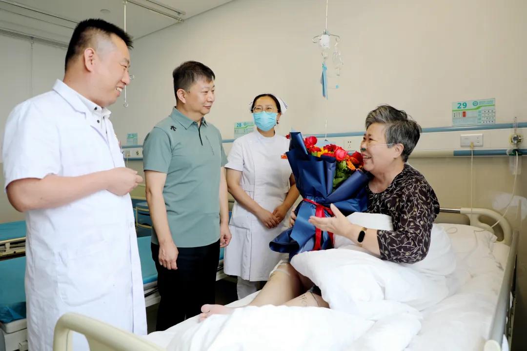 5月30日上午,市二院黨委書記魏松、副院長劉橋?qū)3虂淼讲》浚赐繂栠@位康復(fù)中的香港同胞,送上代表健康祝愿的鮮花,關(guān)切詢問其身體恢復(fù)情況,并送上端午安康的祝福。“沒想到在異鄉(xiāng)生病,還能在節(jié)日收到這么溫暖的關(guān)懷,真的太感謝大家了!是二院優(yōu)秀的醫(yī)護(hù)團(tuán)隊(duì)救了我的命,我們?nèi)叶几屑げ槐M!感謝二院!感謝漯河!”翁阿姨激動(dòng)地表示,醫(yī)院高效的救治與貼心的服務(wù),讓他感受到了重生的喜悅和家一般的溫暖。