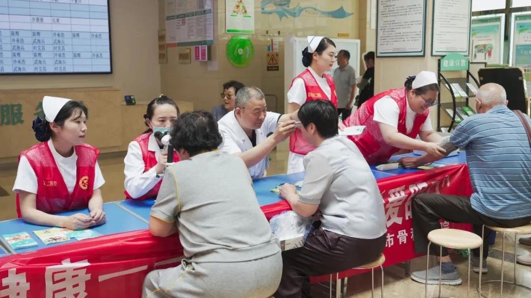 6月6日愛眼日當(dāng)天,在漯河醫(yī)專二附院門診一樓,楊志強主任帶領(lǐng)團(tuán)隊開展義診活動?,F(xiàn)場人頭攢動:王軍敬醫(yī)生為絡(luò)繹不絕的市民進(jìn)行專業(yè)眼科檢查;尹姿文護(hù)士長帶領(lǐng)志愿者團(tuán)隊發(fā)放科普資料,講解科學(xué)用眼知識。免費咨詢、初步篩查、健康宣教一站式服務(wù),讓優(yōu)質(zhì)眼健康資源直達(dá)群眾身邊,贏得廣泛贊譽。
