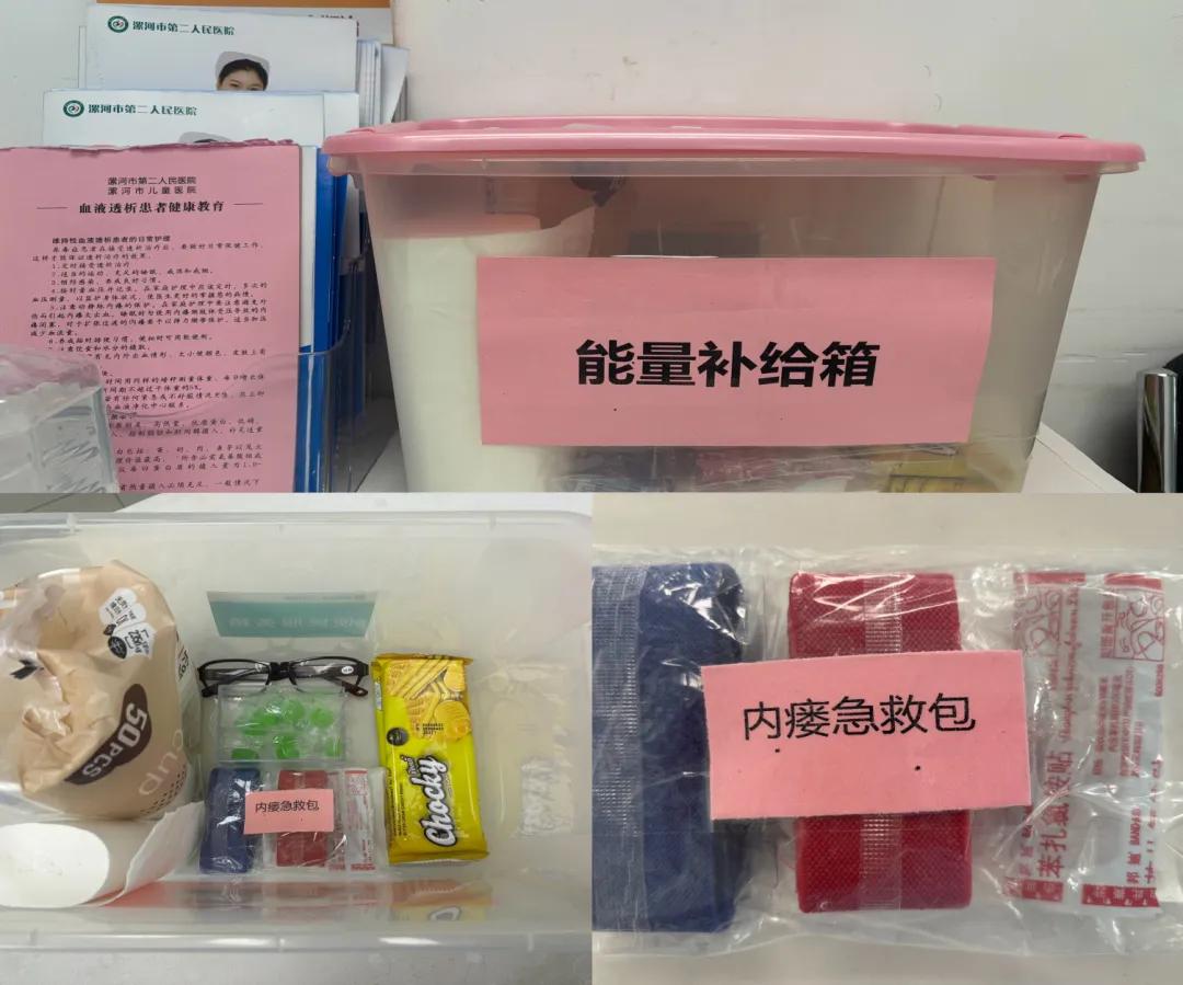 科室始終將患者的需求放在首位,設(shè)置了便民服務(wù)箱及能量補給箱以解燃眉之急,自備糖果、餅干等小零食,為患者提供能量補給。發(fā)放內(nèi)瘺急救包,便于患者回家路途中處理突發(fā)情況,提高了患者滿意度。