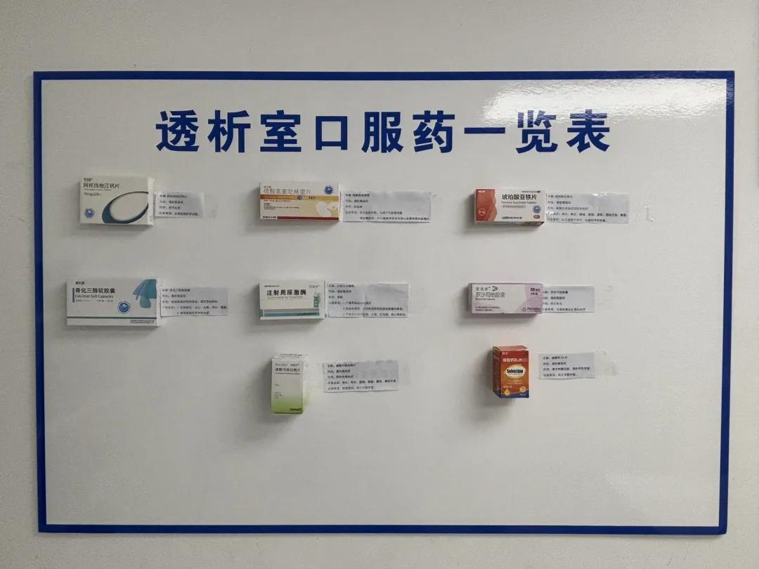 隨著醫(yī)學技術(shù)的發(fā)展,高齡患者越來越多,即便醫(yī)護人員反復講解用藥方法,患者和家屬仍可能因記憶模糊、理解偏差導致用錯藥。為了解決這一難題,血液凈化室推行 “口服藥上墻” 舉措,患者可以拿著自己藥盒與墻上的藥盒進行一一對照。藥盒旁配有詳盡說明,圖文并茂,直觀易懂,有效避免用藥誤區(qū),確保患者用藥安全,提升治療效果。