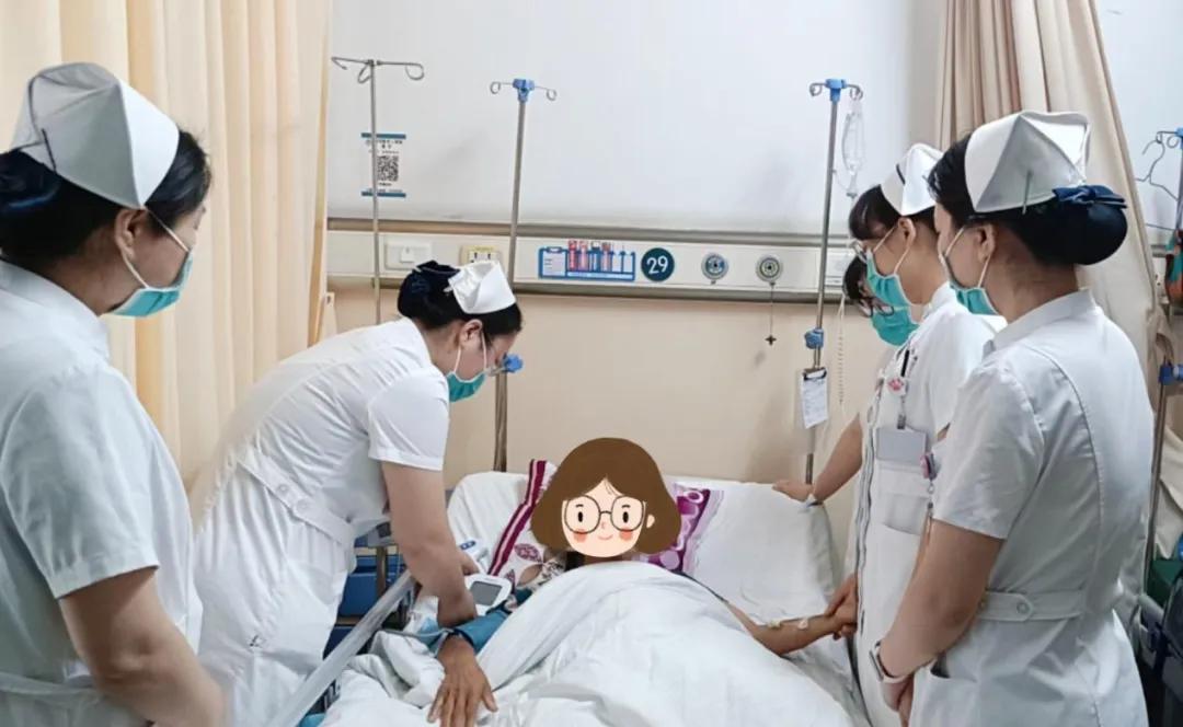 術后,患者身上留置了術區(qū)引流管、深靜脈導管、胃管、導尿管等多根管路,加上智力低下無法理解、術后疼痛等拔管風險極高。護士長陳笑寒帶領護理團隊立即組織疑難病例討論,制定出個性化、專科化的護理方案,如管道的妥善固定,定時翻身、拍背,加強巡視等,在康復初期,責任護士始終陪伴她左右,在做好管道護理的同時,還結合病情循序漸進的引導她下床活動;患者術后常常突然哭泣、抗拒治療,面對患者術后的情緒激動,護理團隊立即剖析原因,及時緩解術后引起的疼痛,并化身"臨時家人",握著她的手輕聲安撫,用耐心和溫柔逐漸撫平她的焦慮。