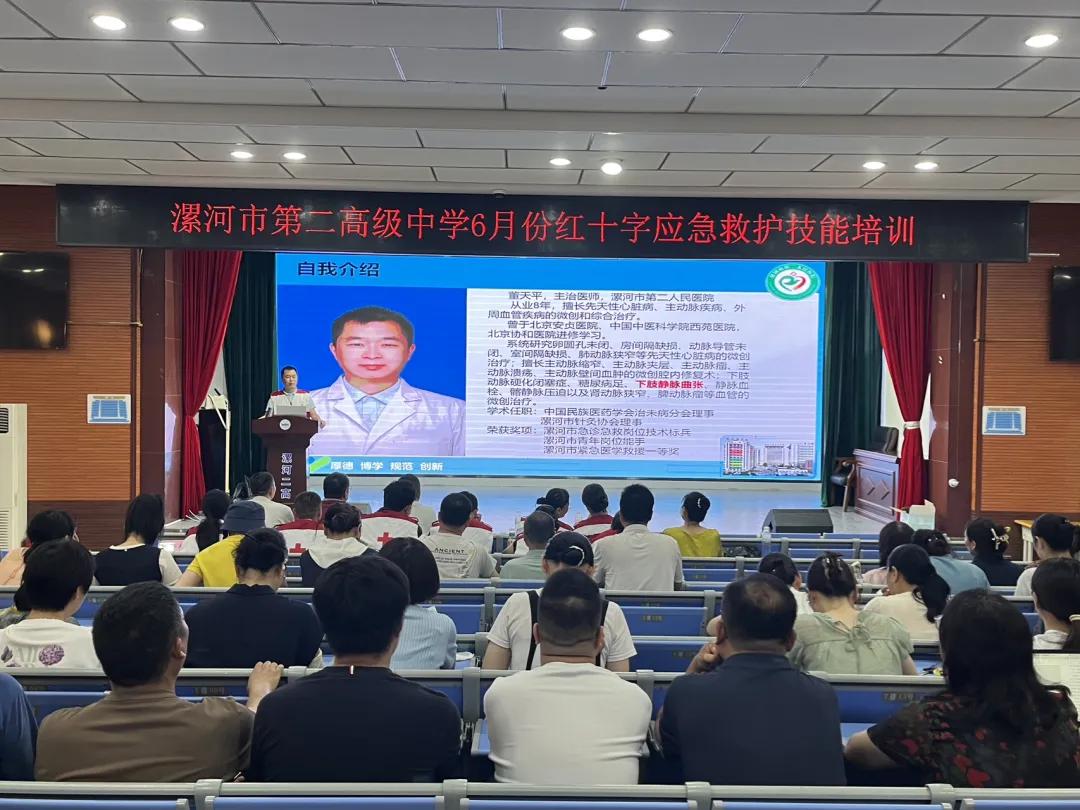6月17日下午,市二院紅十字會志愿服務隊走進漯河二高開展應急救護技能普及活動,吸引了校領導、全體教師及社團學生等200余人積極參與,現(xiàn)場氣氛熱烈,效果顯著。