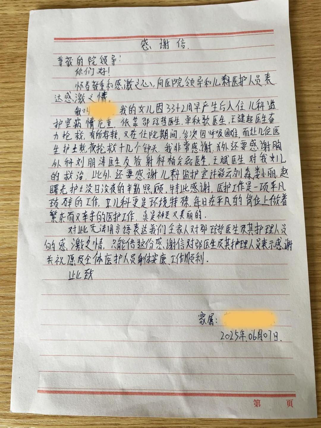 為表達(dá)對醫(yī)護(hù)人員的感激之情,孩子父母專門將一封感謝信送到醫(yī)院,稱贊醫(yī)務(wù)人員“真是神圣又美麗” !