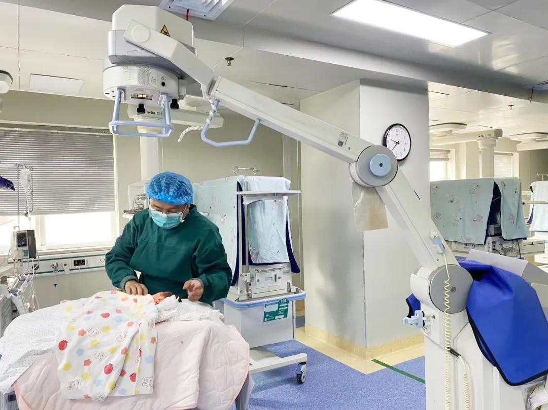 由于該新生兒早產(chǎn)近兩月(僅33周),體重不到4斤,出生后出現(xiàn)呻吟呼吸、吐沫,兒科診斷為 “肺發(fā)育不成熟”(NRDS),并給予無創(chuàng)呼吸機(jī)輔助通氣。然而,30分鐘后患兒突然出現(xiàn)面色發(fā)紫、呼吸困難、血氧驟降,考慮可能發(fā)生氣胸,新生兒團(tuán)隊(duì)緊急電話聯(lián)系放射科。