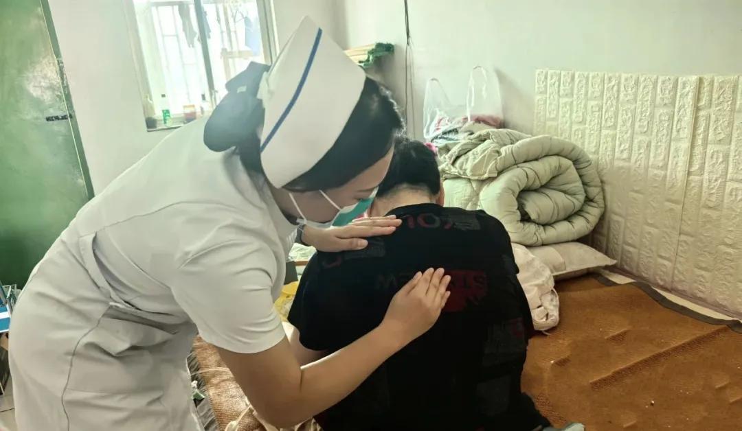 顧不上天氣炎熱,兩位專業(yè)護(hù)理人員迅速備好所需器械與耗材,第一時(shí)間趕往患者家中。進(jìn)門后,她們先是細(xì)心詢問患者近況,觀察其身體狀態(tài)??紤]到患者行動(dòng)不便且長久臥床,陳笑寒護(hù)士長輕柔地為李阿姨進(jìn)行翻身、扣背,一邊操作一邊耐心向家屬講解:“長期臥床容易引發(fā)墜積性肺炎,扣背時(shí)要手指并攏從下往上、由外向內(nèi),力度適中,這樣才能幫助痰液排出……” 專業(yè)又細(xì)致的指導(dǎo)讓家屬連連稱贊。