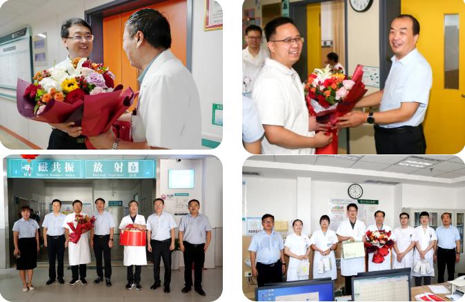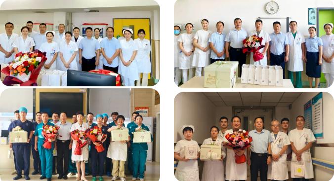 每到一個科室,醫(yī)院領(lǐng)導(dǎo)都將精心準備的鮮花、香甜的蛋糕以及貼心的慰問品送到每一位醫(yī)師手中。一句句 “辛苦了”“注意休息”,讓醫(yī)師們深切感受到醫(yī)院的關(guān)懷與支持。院領(lǐng)導(dǎo)們高度肯定并贊揚了醫(yī)師們在臨床工作中的辛勤付出與無私奉獻。他們強調(diào),醫(yī)務(wù)工作者是社會中最崇高的職業(yè)之一,醫(yī)師們憑借自己的專業(yè)智慧和汗水,日夜守護著患者的生命健康,是生命戰(zhàn)場上的 “最美逆行者”。