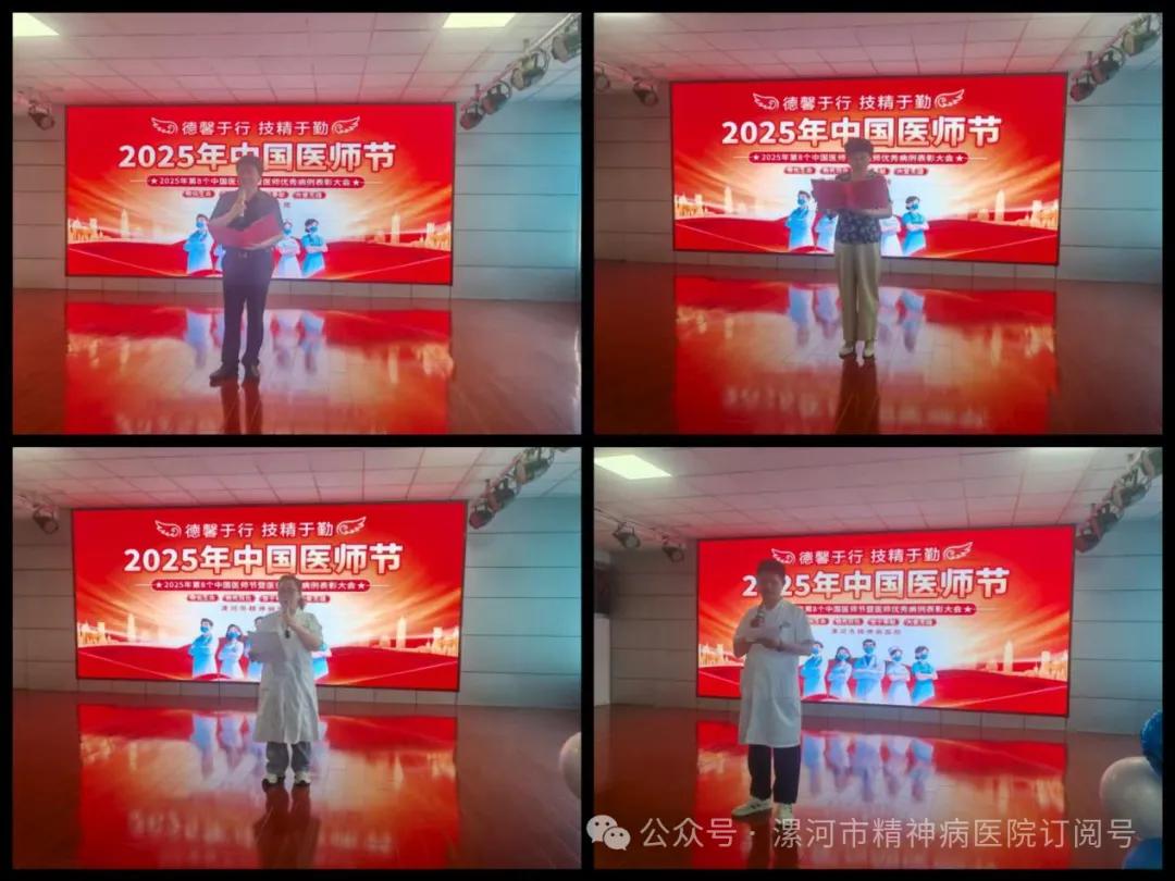 活動(dòng)最后,院領(lǐng)導(dǎo)再次走上臺(tái),為全體醫(yī)師送上真摯祝福。希望大家在守護(hù)患者心靈的同時(shí),也能照顧好自己的身心健康,期待未來(lái)全院醫(yī)師繼續(xù)攜手并肩,為推動(dòng)精神衛(wèi)生事業(yè)發(fā)展、守護(hù)大眾心理健康貢獻(xiàn)更多力量。 此次醫(yī)師節(jié)活動(dòng),既彰顯了醫(yī)院對(duì)醫(yī)師群體的關(guān)懷,也凝聚了團(tuán)隊(duì)力量。未來(lái),漯河市精神病醫(yī)院全體醫(yī)師將繼續(xù)以專(zhuān)業(yè)素養(yǎng)與人文關(guān)懷為筆,書(shū)寫(xiě)守護(hù)心理健康的動(dòng)人篇章。(黃 玲 甄銀鵬)