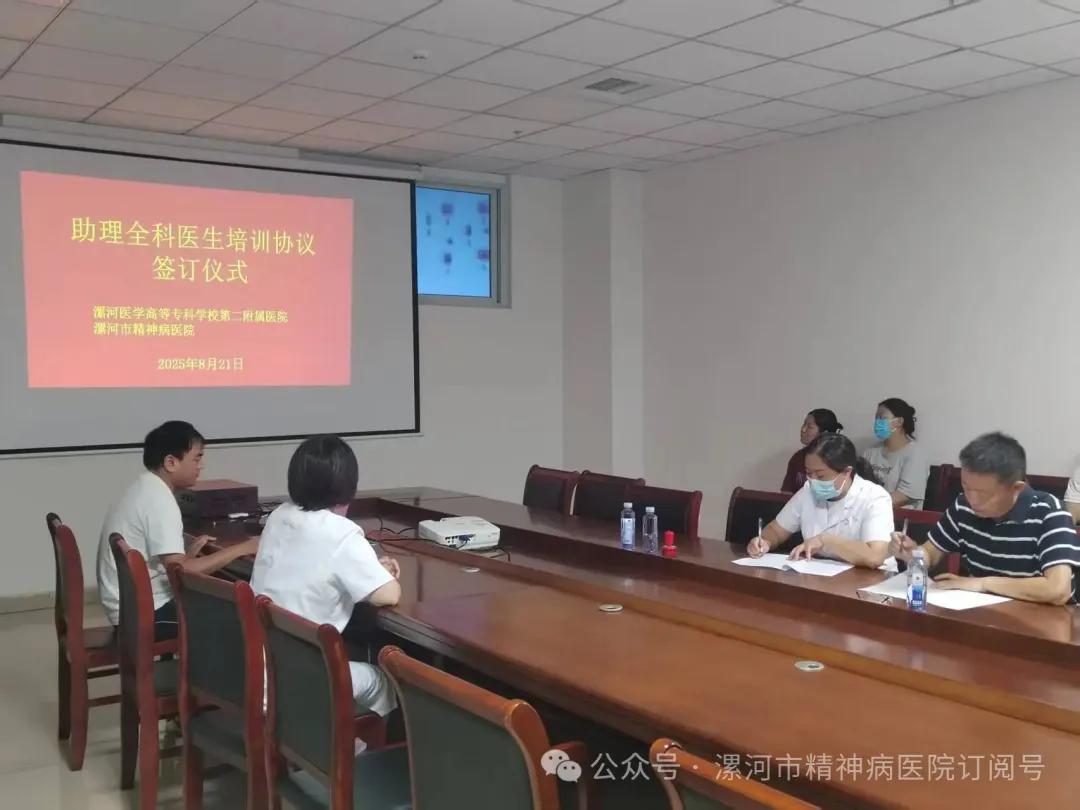 8月21日,漯河醫(yī)學(xué)高等??茖W(xué)校第二附屬醫(yī)院劉國鋒書記及相關(guān)負(fù)責(zé)人帶領(lǐng)30余名助理全科醫(yī)生到漯河市精神病醫(yī)院開展參觀學(xué)習(xí)活動。現(xiàn)場簽訂助理全科醫(yī)生培訓(xùn)合作協(xié)議,共同搭建理論與實(shí)踐相結(jié)合的學(xué)習(xí)平臺。