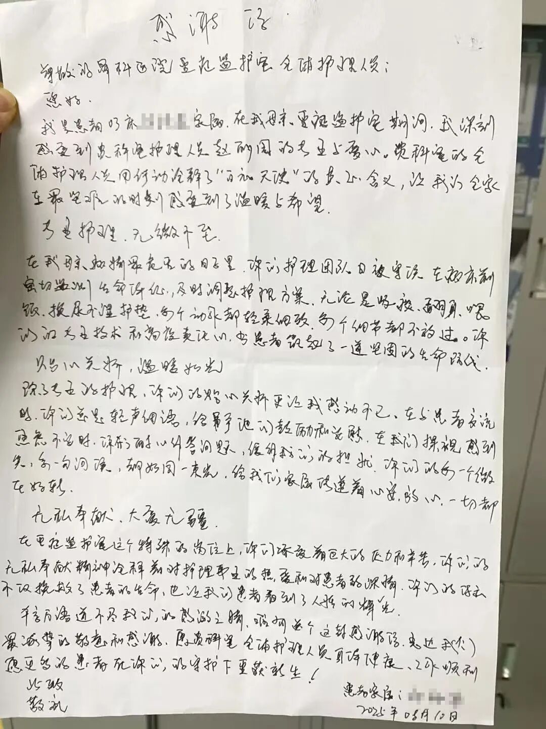 重獲新生的喜悅和對救命之恩的感激,讓患者一家決定用最傳統(tǒng)也最莊重的方式表達謝意——贈送錦旗。在莊重的贈送儀式上,當(dāng)患者家屬親手展開那面凝聚著全家心意的錦旗時,他再也抑制不住內(nèi)心的情感:“今天,我母親能康復(fù)出院,是重癥醫(yī)學(xué)科全體醫(yī)護人員用高超的醫(yī)術(shù)、無盡的耐心和博大的愛心創(chuàng)造的奇跡!回想母親搶救時那段日子,我因為自己的焦慮,對醫(yī)生護士說了過激的話,今天,我要鄭重地向你們道歉!感謝你們不僅救了我母親的命,更在我最失態(tài)的時候,用包容和理解守護了我們家屬的心。” 他深深的鞠躬,讓在場不少醫(yī)護人員也紅了眼眶。