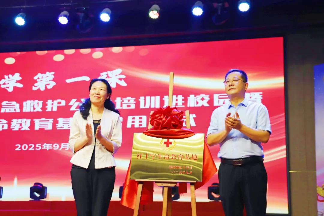 儀式上,郭峰發(fā)表致辭,表示生命教育基地的建立及應(yīng)急救護(hù)培訓(xùn)的開展,是守護(hù)青少年健康成長的重要舉措。趙國利宣讀源匯區(qū)實(shí)驗(yàn)學(xué)校紅十字會批復(fù)文件,孫穎華和郭峰共同為“源匯區(qū)實(shí)驗(yàn)學(xué)校紅十字生命教育基地”揭牌,學(xué)生代表張雅涵上臺表達(dá)對應(yīng)急救護(hù)事業(yè)的憧憬,李紅臣介紹了學(xué)校紅十字社團(tuán)的基本情況,闡述了紅十字生命教育基地啟用的重要意義,以及對未來發(fā)展的規(guī)劃。