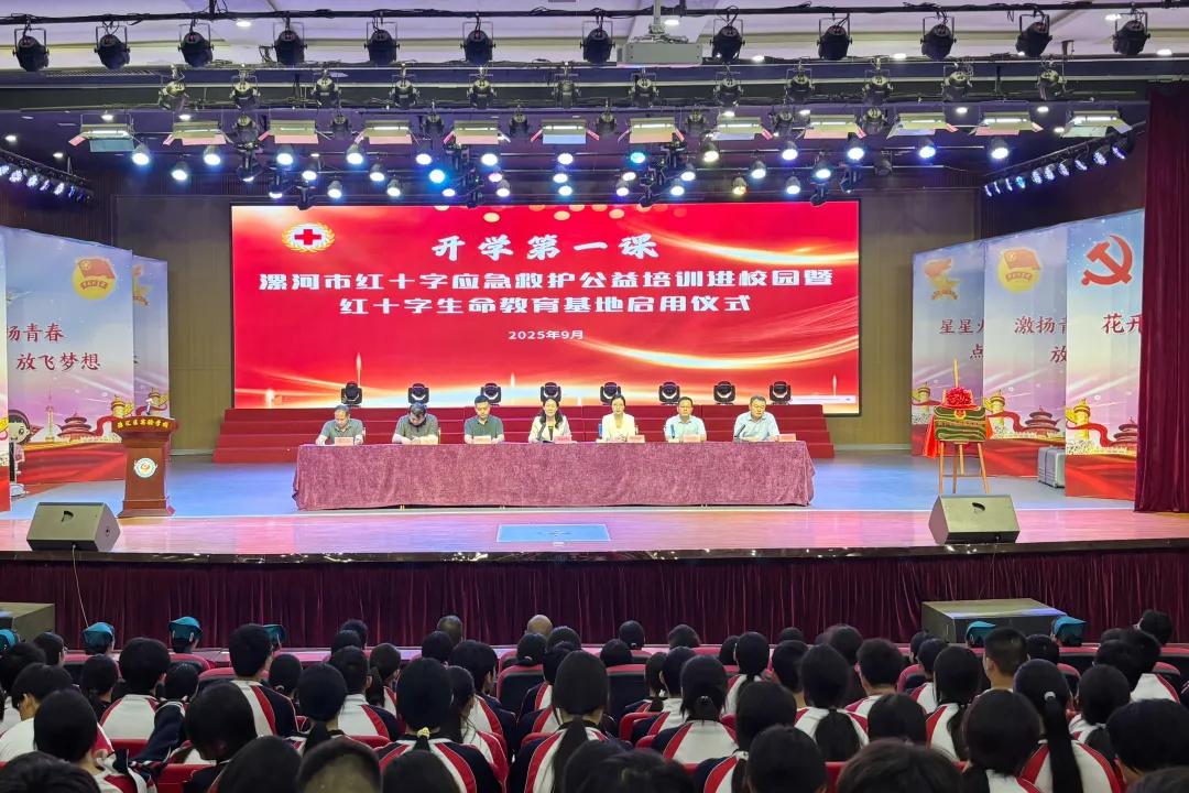 9月4日上午,漯河市紅十字會、漯河市中醫(yī)院、源匯區(qū)實(shí)驗(yàn)學(xué)校,聯(lián)合舉行開學(xué)第一課——漯河市紅十字應(yīng)急救護(hù)公益培訓(xùn)進(jìn)校園暨紅十字生命教育基地啟用儀式。漯河市紅十字會黨組書記、常務(wù)副會長孫潁華,漯河市中醫(yī)院黨委書記、院長楊軼,市考試中心黨總支委員、副主任翟昕陽,源匯區(qū)政府副區(qū)長、紅十字會會長郭峰,源匯區(qū)教育局黨組書記、局長張銳等領(lǐng)導(dǎo)出席,源匯區(qū)實(shí)驗(yàn)學(xué)校700余名師生代表、市中醫(yī)院紅十字志愿者共同參與活動。儀式由源匯區(qū)紅十字會常務(wù)副會長趙國利主持。