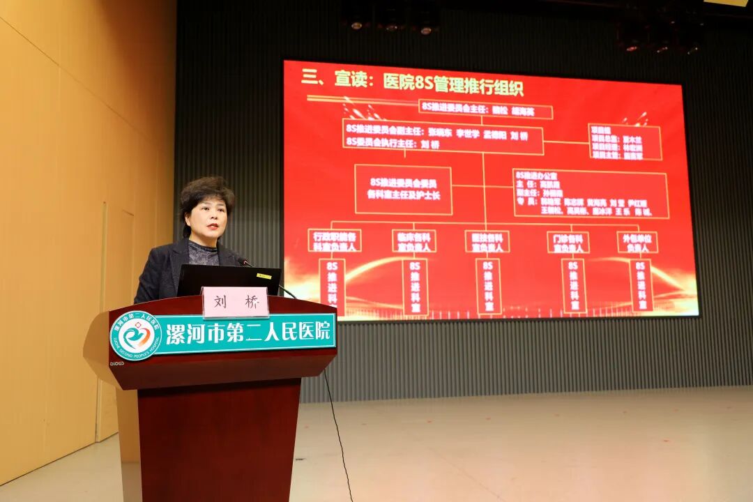 副院長劉橋宣讀了醫(yī)院8S管理目的與推行組織架構(gòu),通過明確管理目標(biāo)與責(zé)任分工,讓全體參會人員清晰知曉8S推行的核心方向與執(zhí)行體系,為后續(xù)工作劃定“路線圖”。