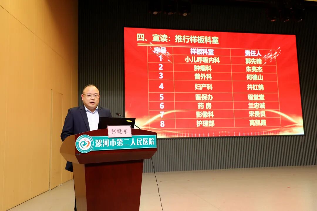副院長張曉東宣讀了醫(yī)院8S管理推行樣板科室名單。醫(yī)院確定了小兒呼吸科、腫瘤科、普外科、婦產(chǎn)科、醫(yī)保辦、藥房、影像科、護理部8個科室為首批試點,肩負(fù)起“先行探索、樹立標(biāo)桿”的重要使命。