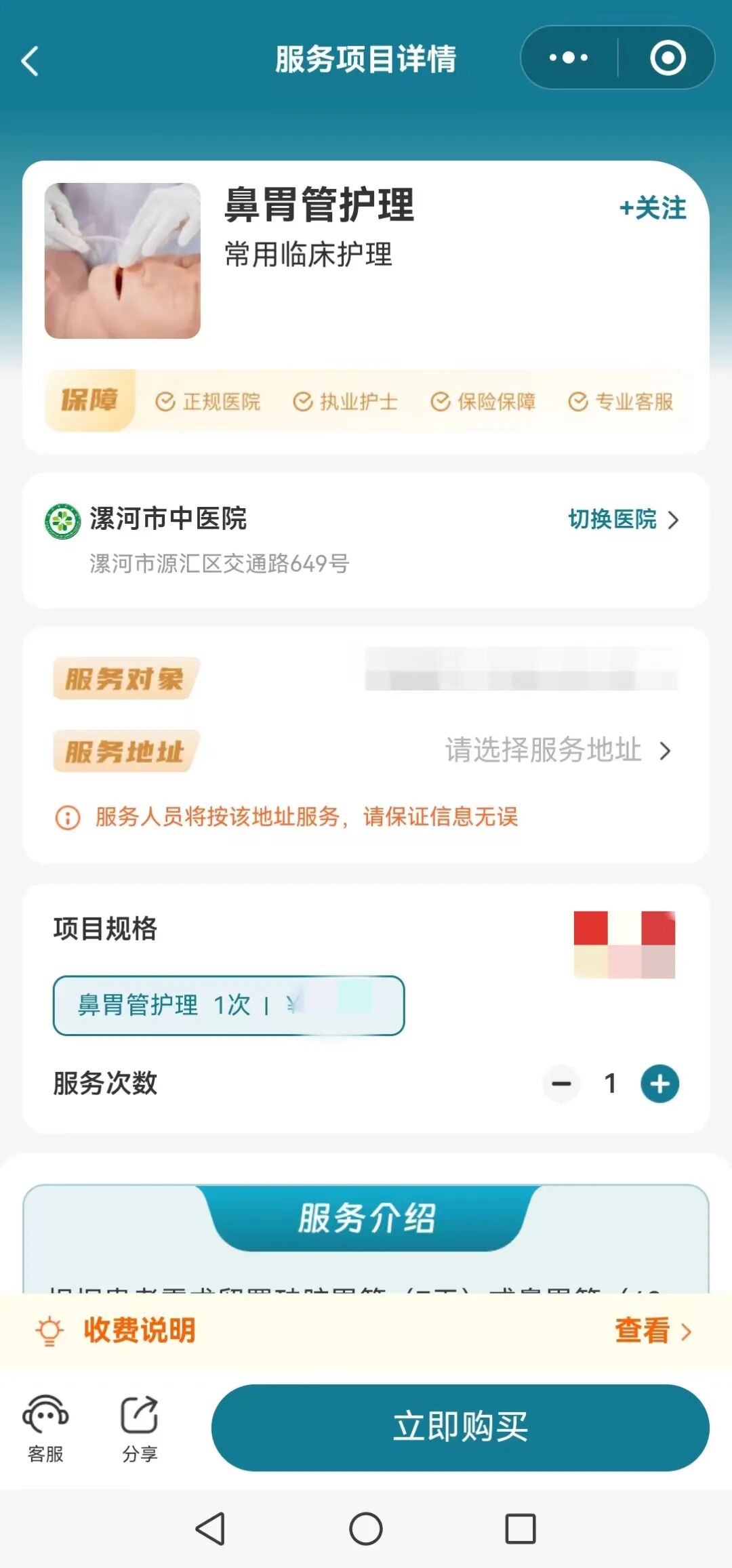 選擇服務(wù): 根據(jù)需求,在平臺(tái)上選擇所需的護(hù)理服務(wù)項(xiàng)目,如靜脈采血、更換胃管/尿管、PICC維護(hù)、壓瘡護(hù)理等。