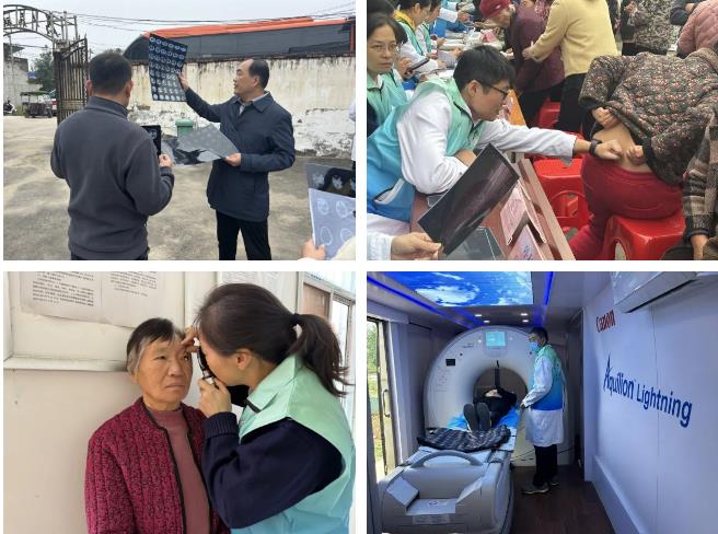 活動現(xiàn)場,專家志愿者各司其職,有序地為當?shù)鼐用襁M行血壓、手指血糖的免費測量,進行心電圖檢查、甲狀腺彩超檢查、骨密度檢測、眼底篩查、CT檢查、體格檢查,提供用藥指導、健康咨詢、疾病診斷等服務。針對高血壓、糖尿病、關(guān)節(jié)炎等常見慢性病,提供個性化的用藥指導和飲食建議。