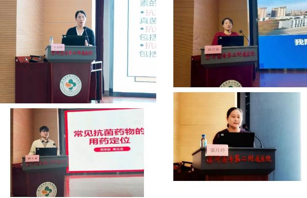 培訓環(huán)節(jié),急診重癥監(jiān)護室主任王春枝、藥學部抗感染臨床藥師劉會茹、藥學部抗感染臨床藥師蔣玉龍、檢驗科副主任張月玲,分別圍繞《是治療,還是打擾?-重新審視我們的抗菌藥物處方》《我院抗菌藥物應用存在問題及分析》《常見抗菌藥物的用藥定位》《微生物標本規(guī)范采集》進行內容分享。