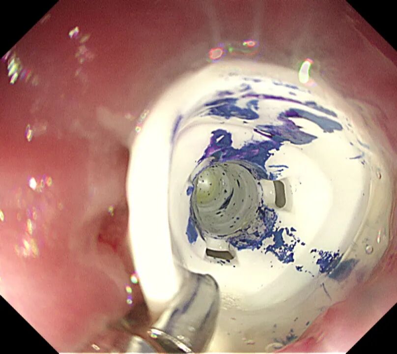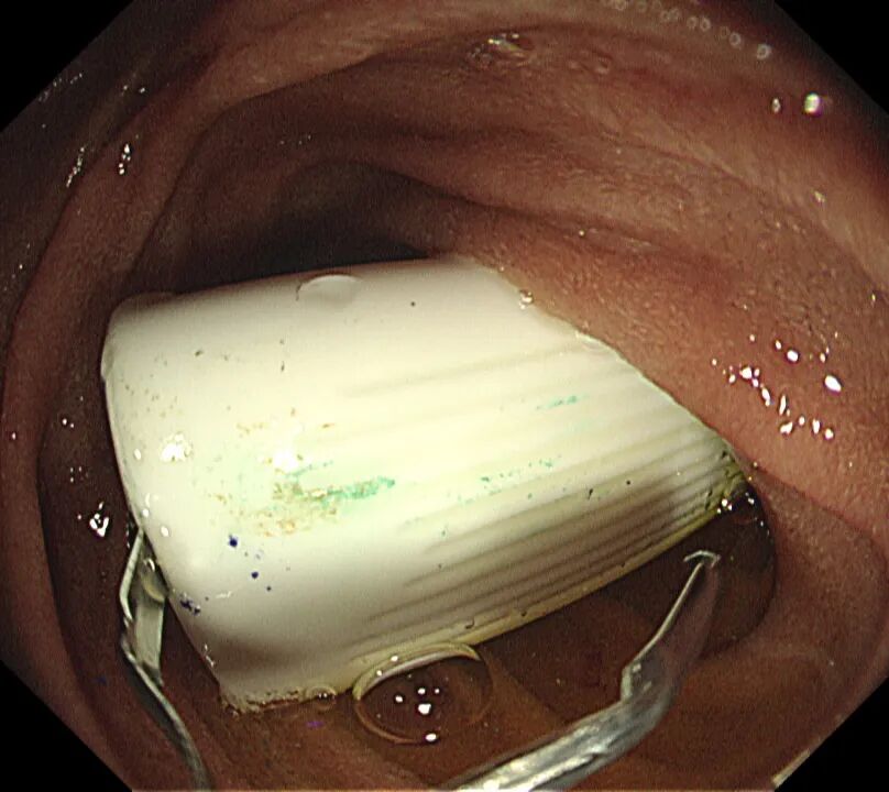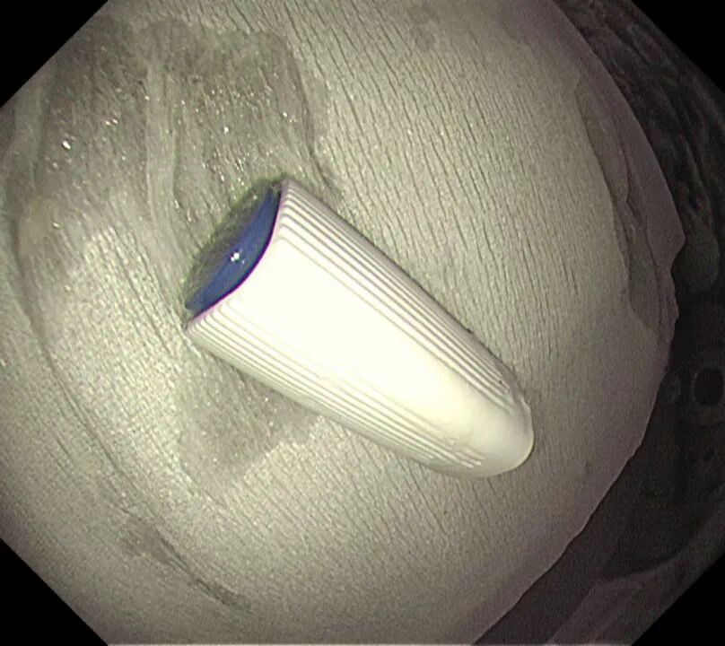 時間不等人,雖已臨近晚7點,市二院第一時間啟動應(yīng)急響應(yīng)機(jī)制,內(nèi)鏡室、麻醉科醫(yī)護(hù)技立即返崗就位,并經(jīng)院辦等職能部門積極協(xié)調(diào),盡可能縮短術(shù)前準(zhǔn)備時間,迅速制定了取出異物的方案。隨后,在全身麻醉下,朗朗安然入睡,醫(yī)生通過纖細(xì)的胃鏡,精準(zhǔn)地找到了那個“惹事”的筆帽位于十二指腸內(nèi),并順利將其取出。整個過程僅用時十幾分鐘,朗朗術(shù)后很快蘇醒,觀察無礙后平安回家。