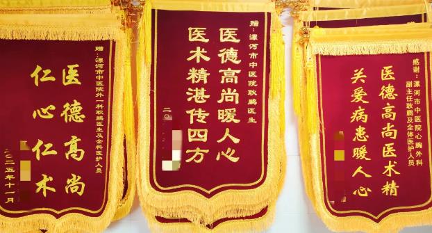 近日,漯河市中醫(yī)院外一科副主任耿鵬的診室里暖意融融,一周之內(nèi),三面飽含深情的錦旗相繼送達(dá),“醫(yī)德高尚 仁心仁術(shù)”“大醫(yī)精誠(chéng)德醫(yī)雙馨 仁心仁術(shù)情暖人心”等燙金大字,不僅見(jiàn)證著患者的康復(fù)喜悅,更鐫刻著一位醫(yī)者對(duì)職業(yè)的敬畏與堅(jiān)守。