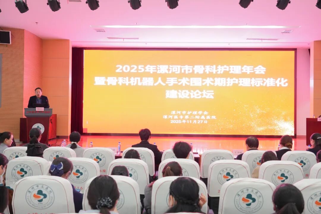 11月27日,由漯河市護(hù)理學(xué)會主辦、漯河醫(yī)專二附院(漯河市骨科醫(yī)院、漯河市立醫(yī)院)承辦的2025年漯河市骨科護(hù)理年會暨骨科機(jī)器人手術(shù)圍術(shù)期護(hù)理標(biāo)準(zhǔn)化建設(shè)論壇順利召開。本次會議聚焦骨科機(jī)器人圍術(shù)期護(hù)理前沿,匯聚省內(nèi)外專家、漯河市骨科專業(yè)委員會委員及各級醫(yī)療機(jī)構(gòu)護(hù)理骨干,共商學(xué)科發(fā)展藍(lán)圖,共促護(hù)理質(zhì)量提升。會議開幕式由漯河醫(yī)專二附院副院長曹鵬克主持。
