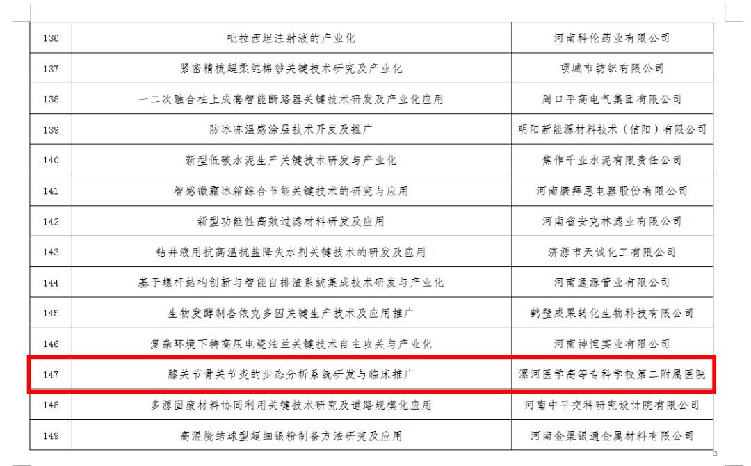 近日,河南省科學(xué)技術(shù)廳公示了2025年度河南省中央引導(dǎo)地方科技發(fā)展資金擬支持項(xiàng)目清單,由漯河醫(yī)專二附院(漯河市骨科醫(yī)院、漯河市立醫(yī)院)申報(bào)的“膝關(guān)節(jié)骨關(guān)節(jié)炎的步態(tài)分析系統(tǒng)研發(fā)與臨床推廣”項(xiàng)目成功入選。
