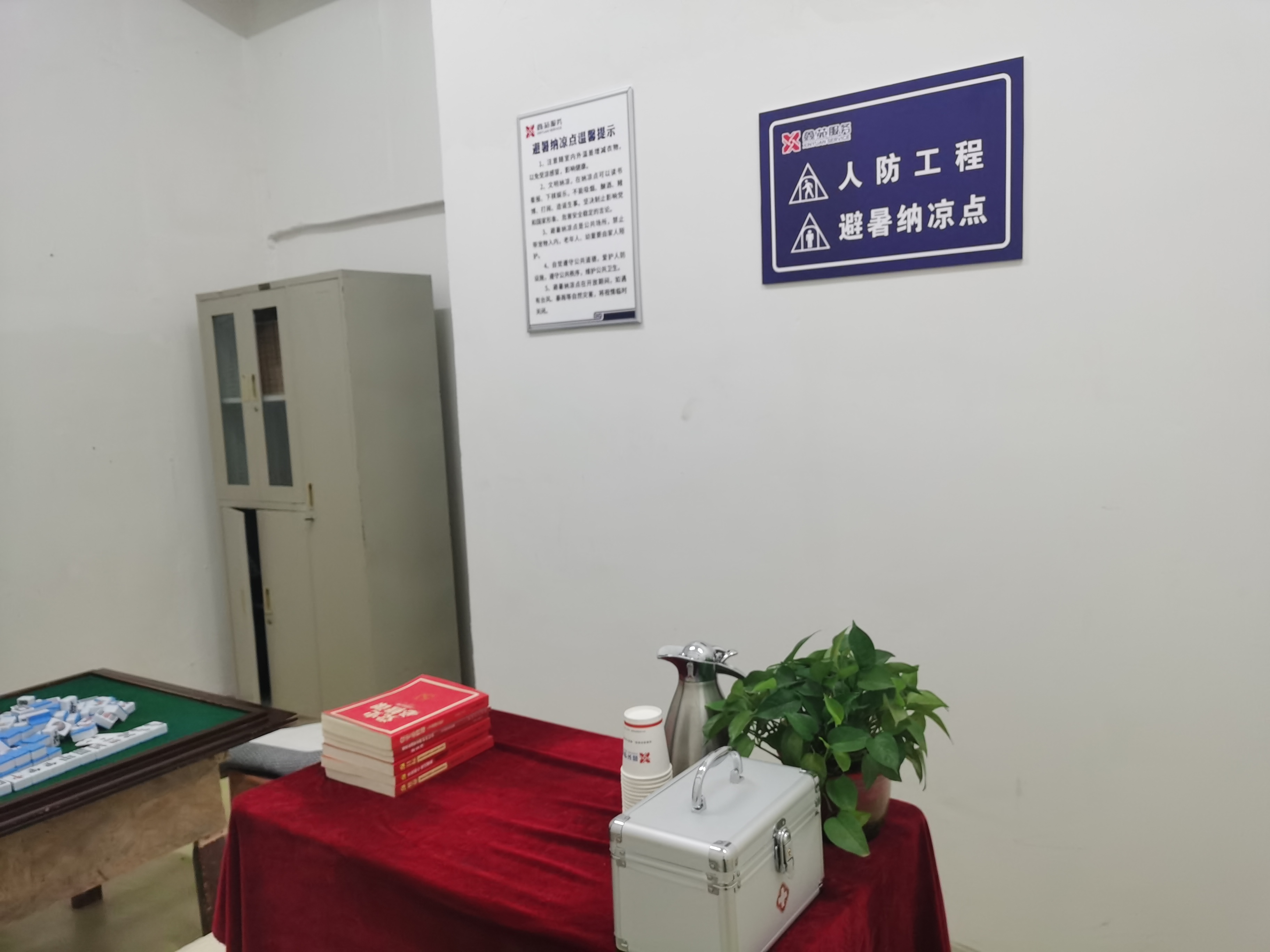 場所安裝大功率空調(diào)設(shè)備,營造清涼愜意的環(huán)境;設(shè)置飲水區(qū)域,提供免費的冷、熱水,配備充電插座,方便市民為電子設(shè)備充電;設(shè)有急救箱,配備藿香正氣水、清涼油、體溫計等常用防暑和急救藥品,隨時應(yīng)對可能出現(xiàn)的身體不適情況。此外,還擺放了涵蓋黨史、科普、人防等方面的書籍和報刊雜志,供市民在納涼時閱讀學習,充實精神世界;準備象棋、跳棋、麻將等娛樂用品,為市民提供休閑娛樂選擇,增進彼此之間的交流互動。