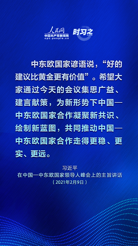 2月9日,國家主席習(xí)近平在北京以視頻方式主持中國—中東歐國家領(lǐng)導(dǎo)人峰會并發(fā)表主旨講話。中國—中東歐國家合作為何能保持旺盛生命力?新形勢下,中國—中東歐國家合作如何發(fā)展?人民網(wǎng)·中國共產(chǎn)黨新聞網(wǎng)“時習(xí)之”欄目摘錄了習(xí)近平的精彩講話,與您一起學(xué)習(xí)。