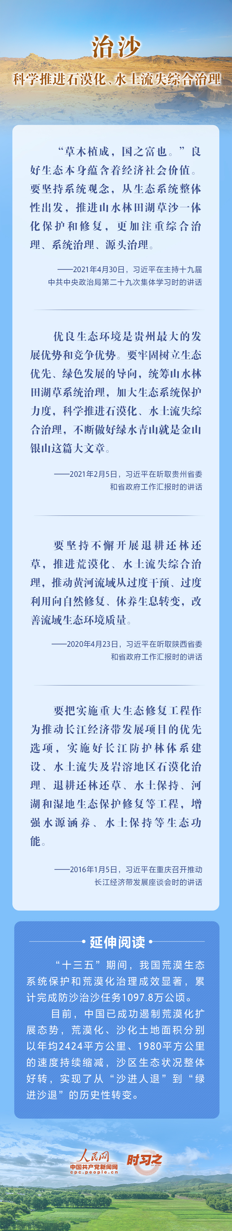 2022年6月17日是第二十八個(gè)世界防治荒漠化與干旱日?;哪侨蛎媾R的重大生態(tài)問題,黨的十八大以來(lái),在習(xí)近平生態(tài)文明思想的指引下,我國(guó)荒漠化防治工作開辟了新境界、邁上了新臺(tái)階。讓我們一起從總書記的重要論述里學(xué)習(xí)領(lǐng)悟中國(guó)踐行綠色發(fā)展理念,堅(jiān)定走好荒漠化防治之路的決心。
