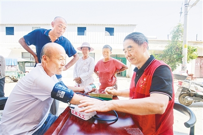 趙國(guó)鎖為居民測(cè)量血壓(資料圖片)。記者 楊 光 攝