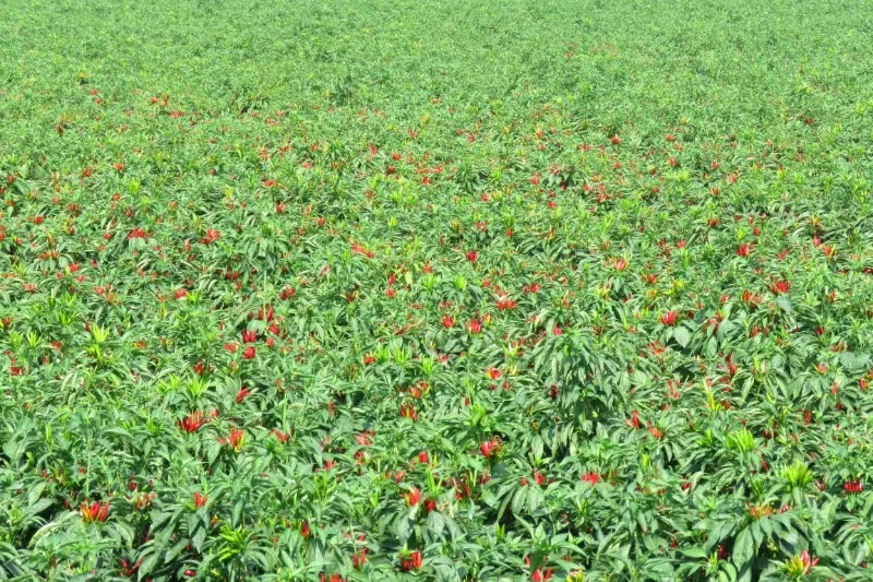 種植時(shí)采用5G北斗導(dǎo)航無人駕駛機(jī)械進(jìn)行辣椒直播,在直播時(shí)播種機(jī)直接播種辣椒種子,同時(shí)可同步鋪設(shè)滴管帶、地膜、下種子、一次成型完成辣椒播種任務(wù),一臺(tái)辣椒播種機(jī)每天可直播辣椒60畝至70畝,可代替100多人移栽。由于辣椒機(jī)械化直播沒有移栽環(huán)節(jié),辣椒根系發(fā)達(dá),植株健壯,防草驅(qū)蟲,不容易出現(xiàn)死棵爛苗的現(xiàn)象,明顯減少了農(nóng)藥和水的用量。每畝7500穴,每穴雙株,每畝可種植辣椒15000株,省時(shí)、省力、省工、省錢而且又高產(chǎn),一般畝產(chǎn)干辣椒800—1000斤,如果管理得當(dāng)畝產(chǎn)突破1000斤是沒有問題的。