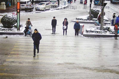 11月23日交通路與人民路交叉口行人闖紅燈。
