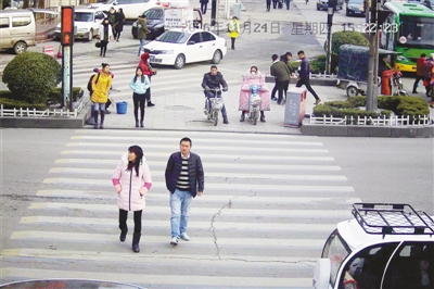 11月24日交通路與人民路交叉口行人闖紅燈。