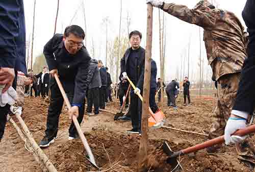 劉尚進(jìn)、李亦博、李思杰、楊驍、蔣志安、高喜東、周新鶴、張宏進(jìn)、辛偉、陳平、周學(xué)功、栗社臣、余偉、呂娜、徐匯川、閆天常、胡新峰、宗萬志、田冠亭及市中級(jí)人民法院院長(zhǎng)陳松林、市人民檢察院檢察長(zhǎng)陳連東與市直及駐漯各單位主要負(fù)責(zé)人,市教育、衛(wèi)生、工商、公安、青年志愿者等社會(huì)各界代表600余人,來到沙河國(guó)家濕地公園合理利用區(qū)內(nèi)參加義務(wù)植樹活動(dòng)。植樹活動(dòng)現(xiàn)場(chǎng)一派熱火朝天的景象,有的移苗扶苗,有的揮鍬鏟土,有的踩土壓實(shí),有的拎桶澆水,不大一會(huì)兒就植下一片新綠。