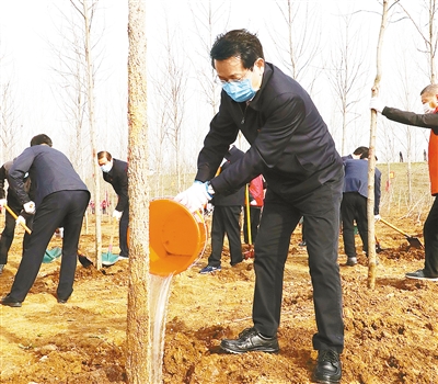 3月12日,市委書記蒿慧杰等同廣大干部群眾一起參加2020年春季義務(wù)植樹活動。記者 王慶建 攝