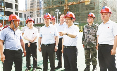 7月15日,市委書記蒿慧杰在黃山路北段察看在建工地防汛工作準(zhǔn)備情況。記者 王慶建 攝