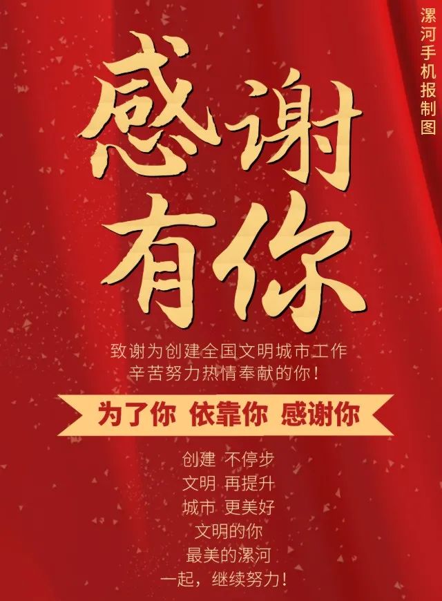“六年拼搏進(jìn)取,六年辛勤耕耘。今天,我們終于迎來了這一激動人心的時(shí)刻!榮譽(yù)得來不易,凝結(jié)著全市人民的智慧、心血和汗水……”我市榮獲“第六屆全國文明城市”稱號的喜訊發(fā)出后,在微信朋友圈、自媒體及各大互聯(lián)網(wǎng)平臺刷屏,大家互相轉(zhuǎn)發(fā)、奔走相告,為創(chuàng)建工作點(diǎn)贊、為漯河人民鼓掌,獲得感、幸福感、自豪感由心而生。
