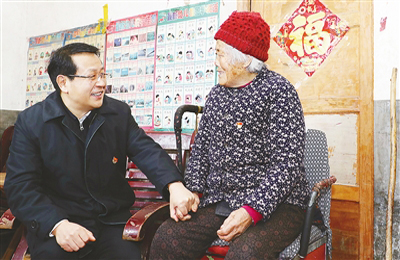 2月2日上午,市委書記蒿慧杰在源匯區(qū)空冢郭鎮(zhèn)空冢郭村親切慰問84歲困難黨員王俊英,并向她致以新春的問候。記者 王慶建 攝