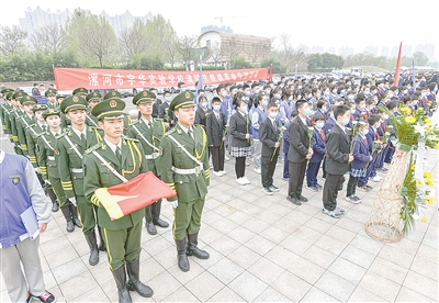 4月2日,我市黨政機關(guān)干部、學(xué)校師生、駐漯部隊官兵及各界人士,紛紛來到市烈士陵園開展清明祭英烈活動,深切緬懷革命先烈豐功偉績。記者 焦海洋 攝