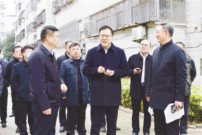3月17日上午,市委書記秦保強等在郾城區(qū)龍塔街道淞江小區(qū)察看社區(qū)網格化管理情況。