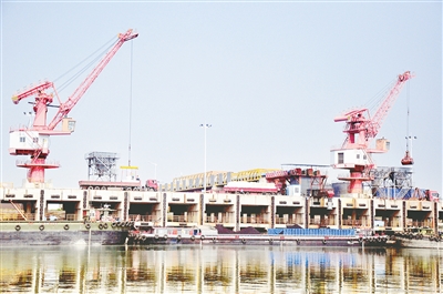 繁忙的漯河港本報(bào)記者 齊國霞 攝