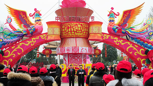 1月28日上午九點(diǎn),2017中原河上街廟會(huì)開幕式在神州鳥園北門隆重舉行,隨后,河上街各景區(qū)的所有節(jié)目全部面向廣大游客展開。各個(gè)景點(diǎn)人頭攢動(dòng)、人山人海,民俗演出、非遺展演、雜技等如火如荼,盡管天氣下著蒙蒙細(xì)雨,但河上街入口被圍了里三層外三層。這里正在舉辦“女皇武則天祭天”盛大表演。據(jù)史載武則天崇佛,相傳是她捐資修建了盧舍那大佛,并組建“十萬(wàn)宮廷樂隊(duì)”。武則天登基后,多次率領(lǐng)百官到禮佛祭天,在重大慶典活動(dòng)及禮佛期間,“十萬(wàn)宮廷樂隊(duì)”都要獻(xiàn)藝。開源河上街景區(qū)據(jù)此挖掘排演出“武皇祭天”表演。