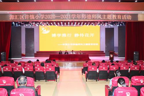 9月21日下午,源匯區(qū)許慎小學(xué)召開師德師風(fēng)主題教育大會,圍繞本學(xué)年源匯區(qū)教育局開展的師德師風(fēng)建設(shè)活動,許慎小學(xué)確立了本學(xué)年以“博學(xué)雅行,靜待花開”為主題的師德師風(fēng)教育活動。