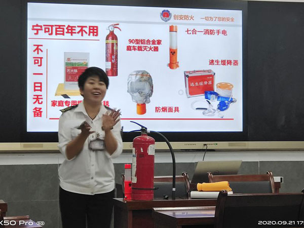 講座中,邢瑞教官分別就如何樹立消防責任意識、清除消防安全隱患、初期火災撲救、滅火器等消防器材的使用、火情緊急情況處置、火災應(yīng)急疏散常識等方面進行了全面的培訓,同時,邢教官通過引用大量實際生活中的真實火災案例和具體的數(shù)字講述了由于人們?nèi)狈ο腊踩R、缺乏基本的滅火技能而引發(fā)的火災事故,通過理論講解和典型案例剖析相結(jié)合的方式,以視頻和圖片的方式進行詳細的講解分析。最后,邢瑞教官又圍繞火災誘發(fā)的主要因素以及發(fā)生火災后的不同救助方法,并且從火災的防范、逃生、自救等方面向老師介紹怎樣預防火災,如何面對火災的經(jīng)驗和方法,提醒教職工在日常生活中要時時防范、處處小心。