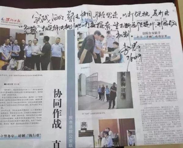 2019年8月13日,市委常委、市委秘書長李建濤專門就此作出批示,對警法協(xié)同、聯(lián)合出擊、“以打促執(zhí)”的做法表示肯定,并希望警法雙方能將合作模式不斷進(jìn)行總結(jié)和提升,形成長效機(jī)制,切實(shí)解決執(zhí)行難。